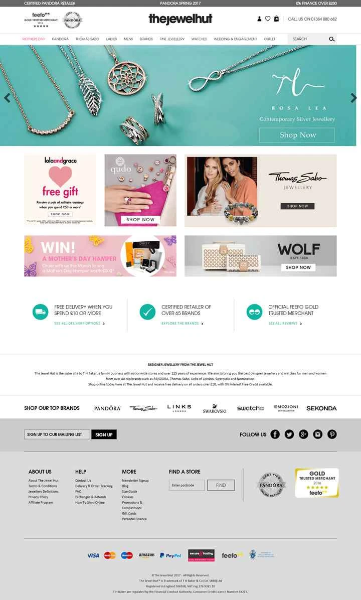Jewel Hutは、125年以上の実績と全国展開を誇る家族経営のTH Bakerの姉妹サイトです。PANDORA、Thomas Sabo、Links of London、Swarovski、Nomçãinなど、80以上のトップブランドから、男性と女性のための最高のデザイナージュエリーと時計をお届けすることを目指しています。